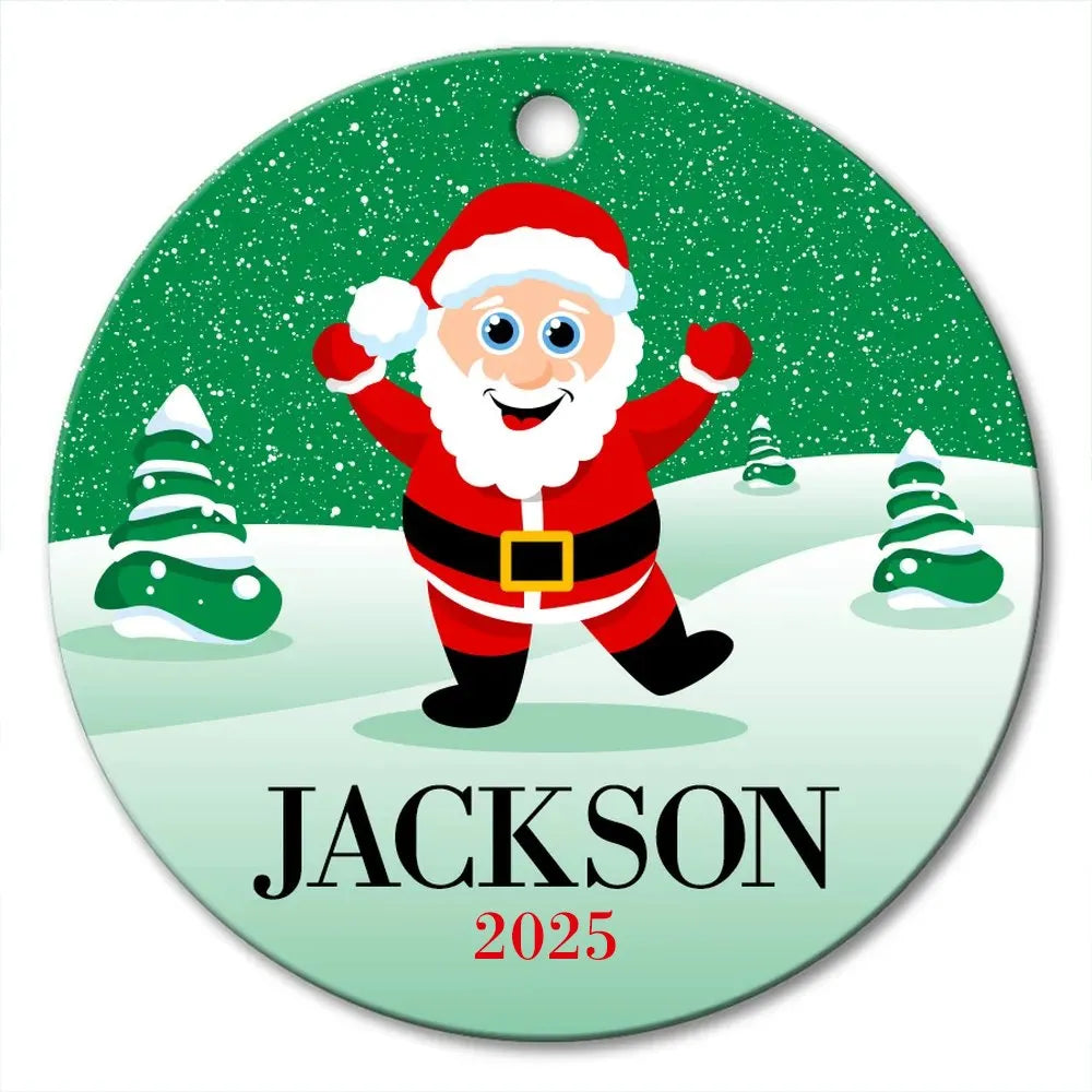 Happy Santa Round Porcelain Ornament