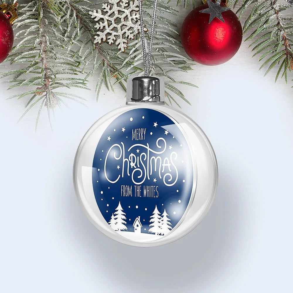 Add a personal touch to your Christmas tree with our stunning personalised Christmas Baubles! These beautiful ornaments are crafted from clear acrylic and feature a screw-on cap with a silver string, making them ready to hang on your tree.