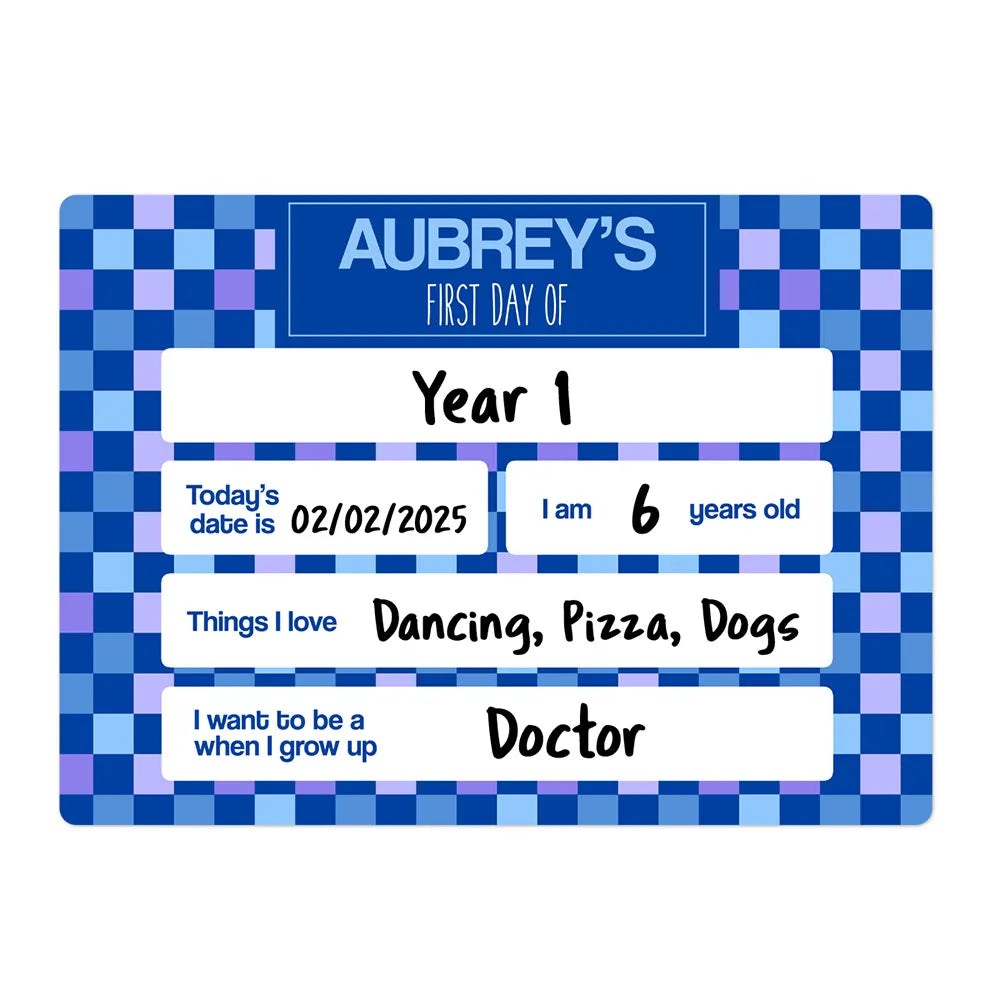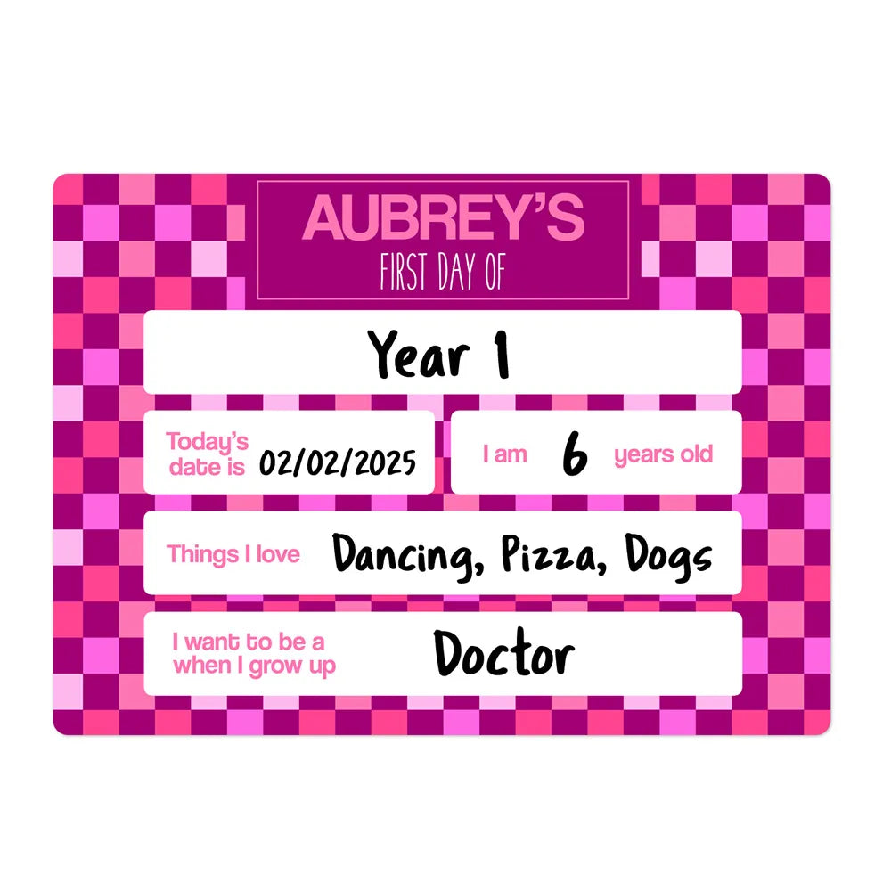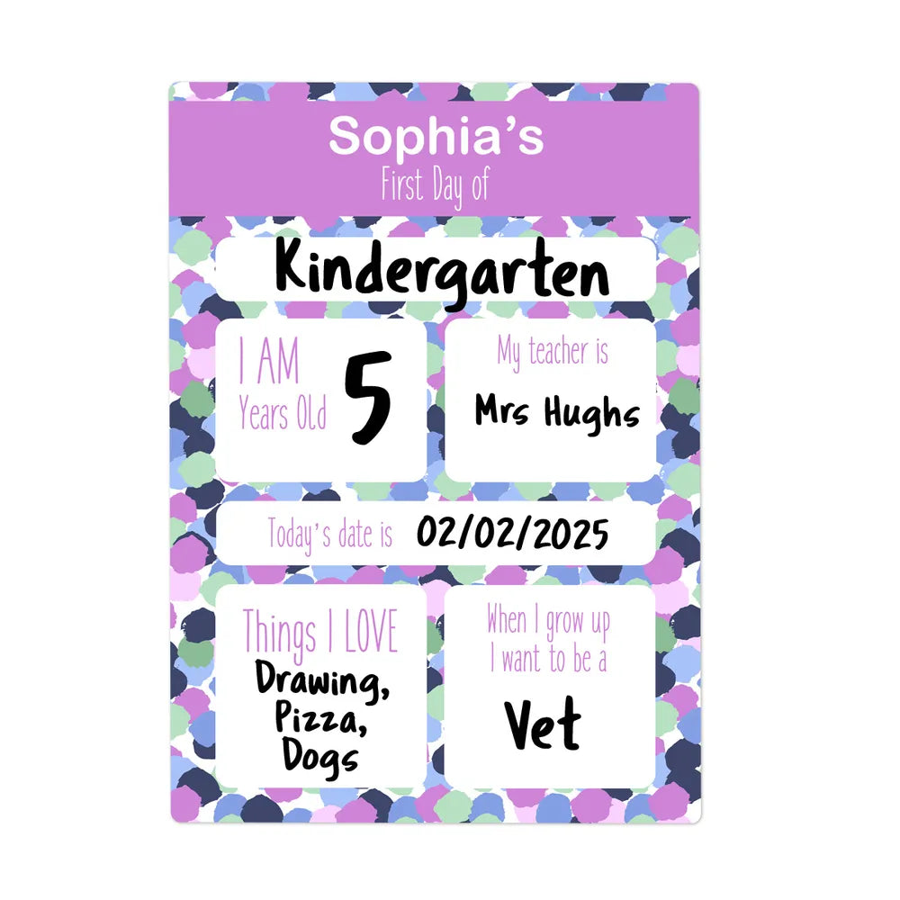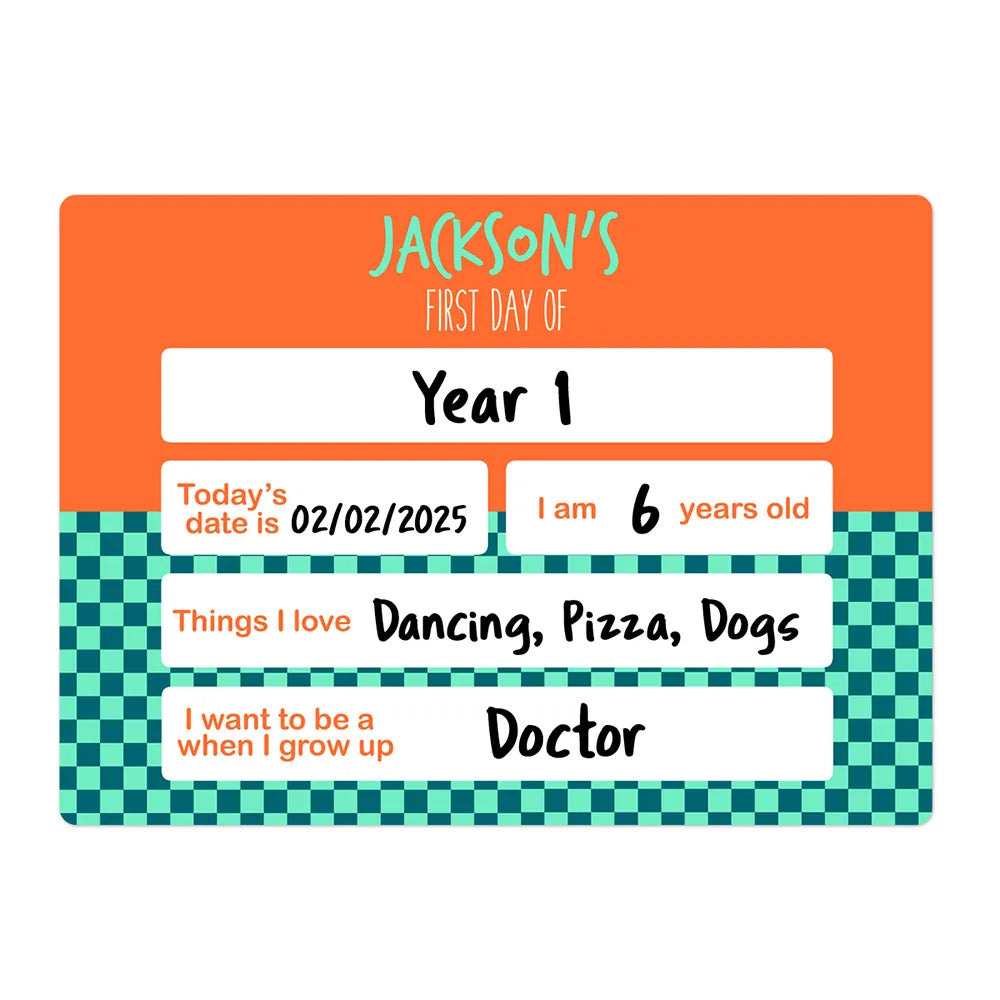 Make your child's first day of school extra special with our personalised sign. This adorable and customisable prop is perfect for capturing precious memories. Featuring a bright and colourful designs, the sign can be personalised with your child's name and grade. Create a lasting keepsake that you can cherish for years to come.