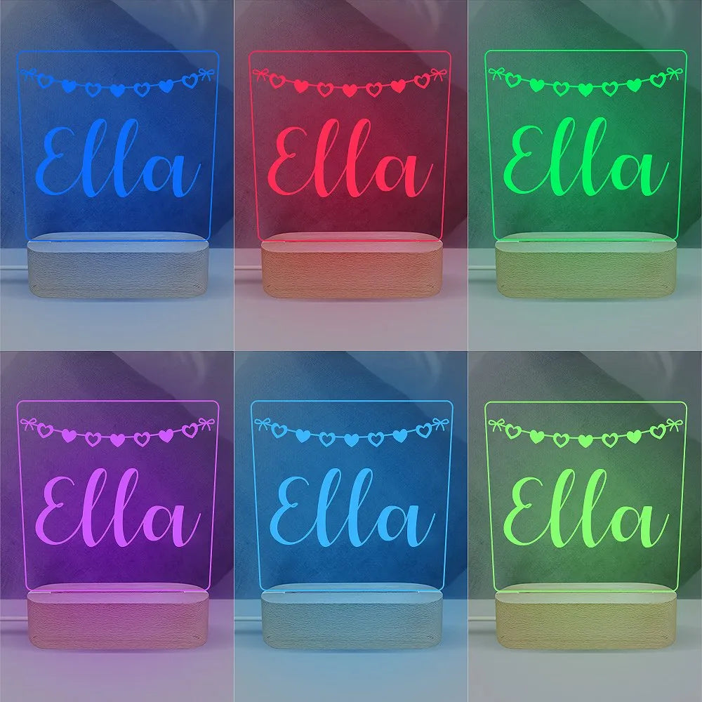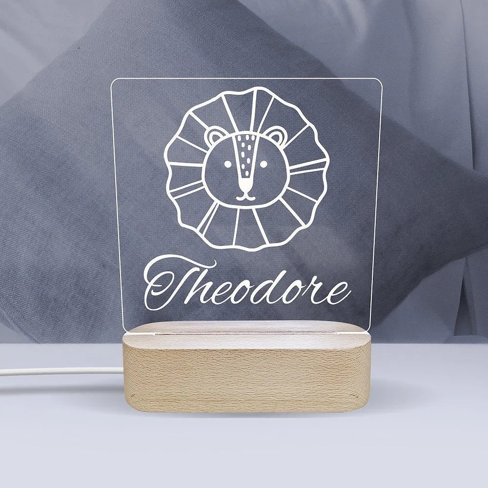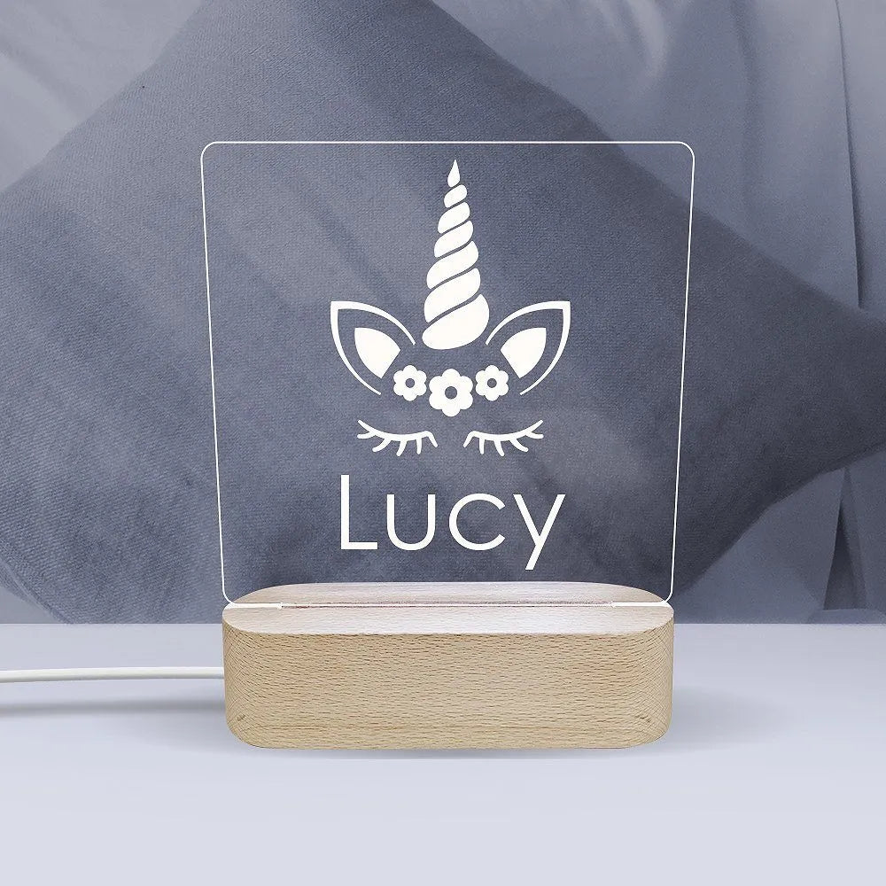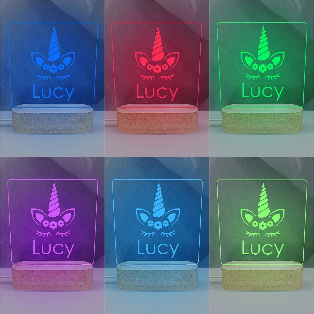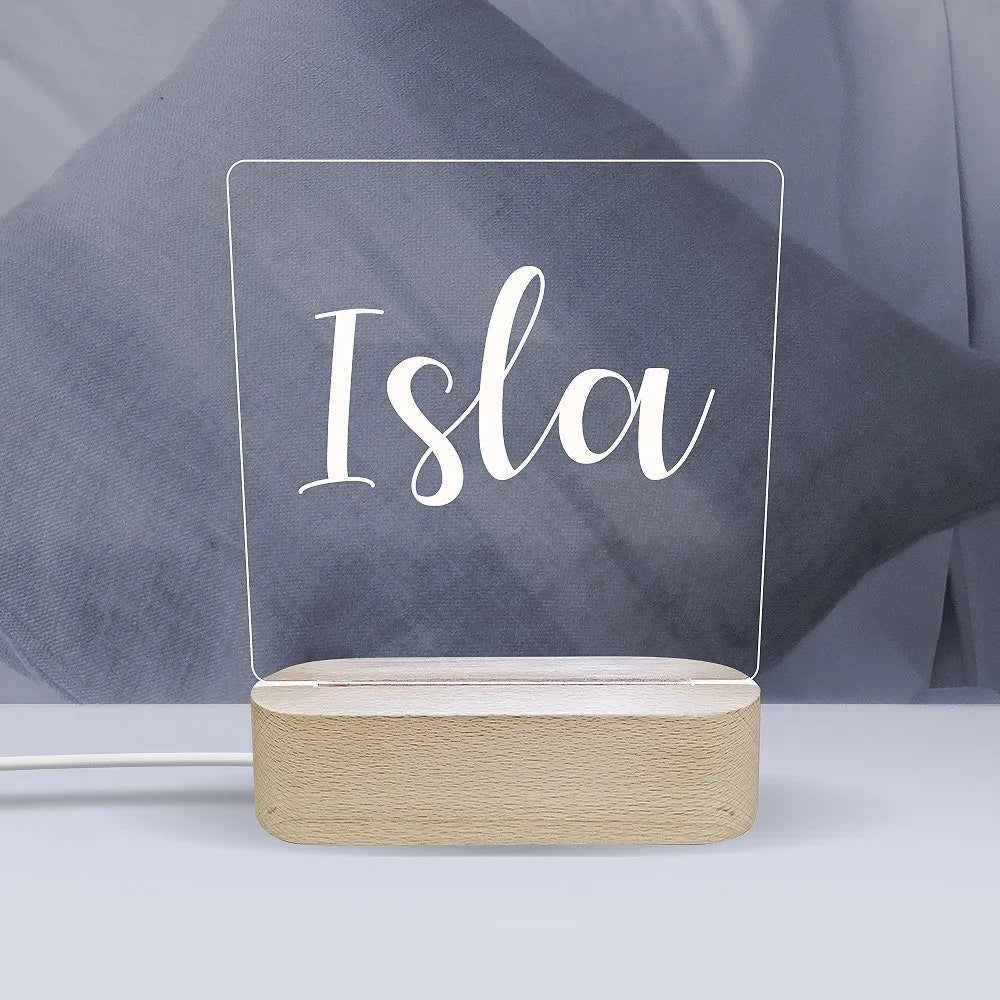 Turn your child's room into a magical wonderland with our personalised night lights! These enchanting lights feature a custom acrylic insert with your child's name displayed proudly. Multi-colored LED lights housed within a sleek wooden base create a calming and comforting glow. The USB wall cable makes it easy to plug in and enjoy the warm ambiance.