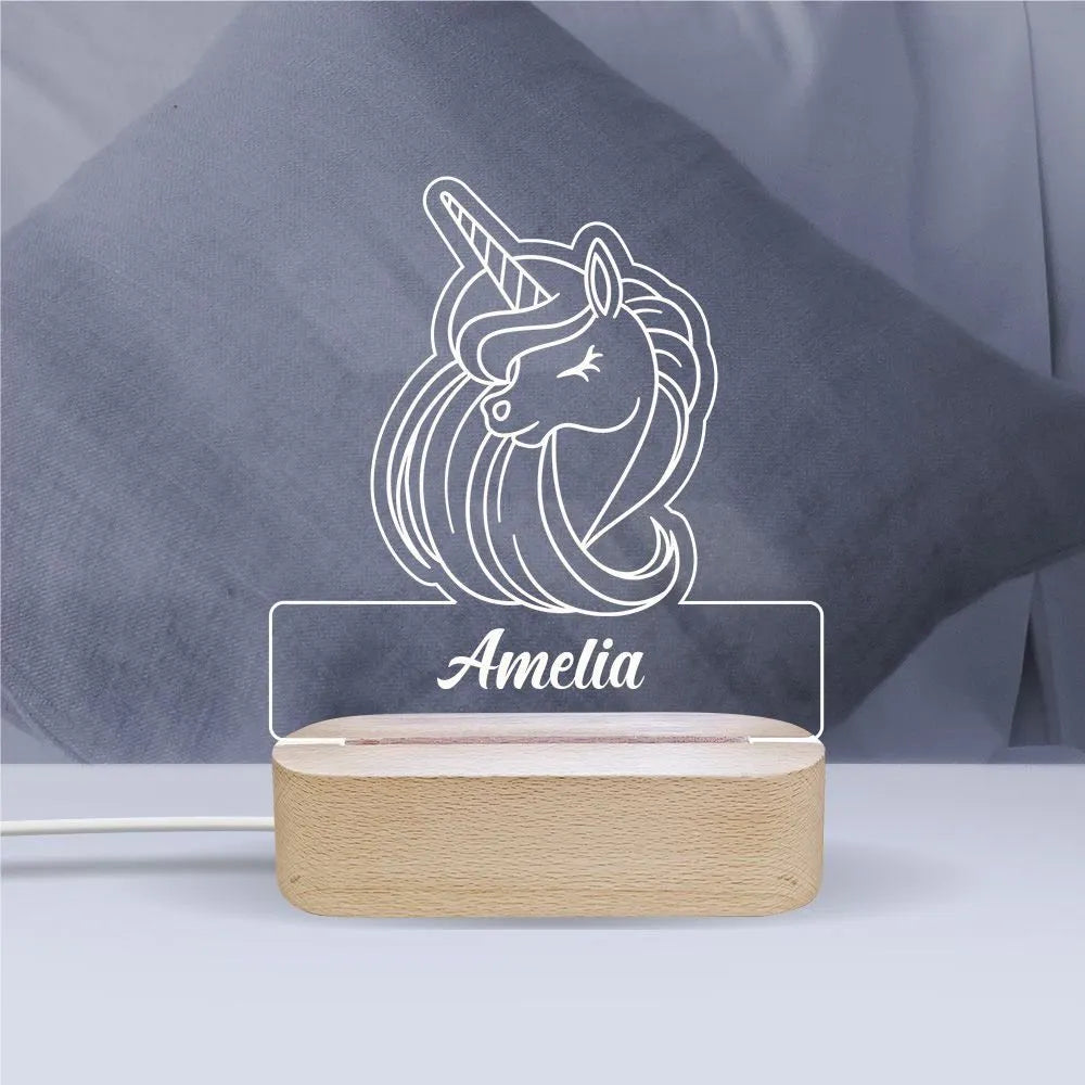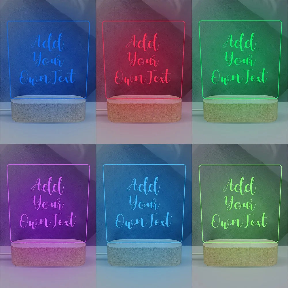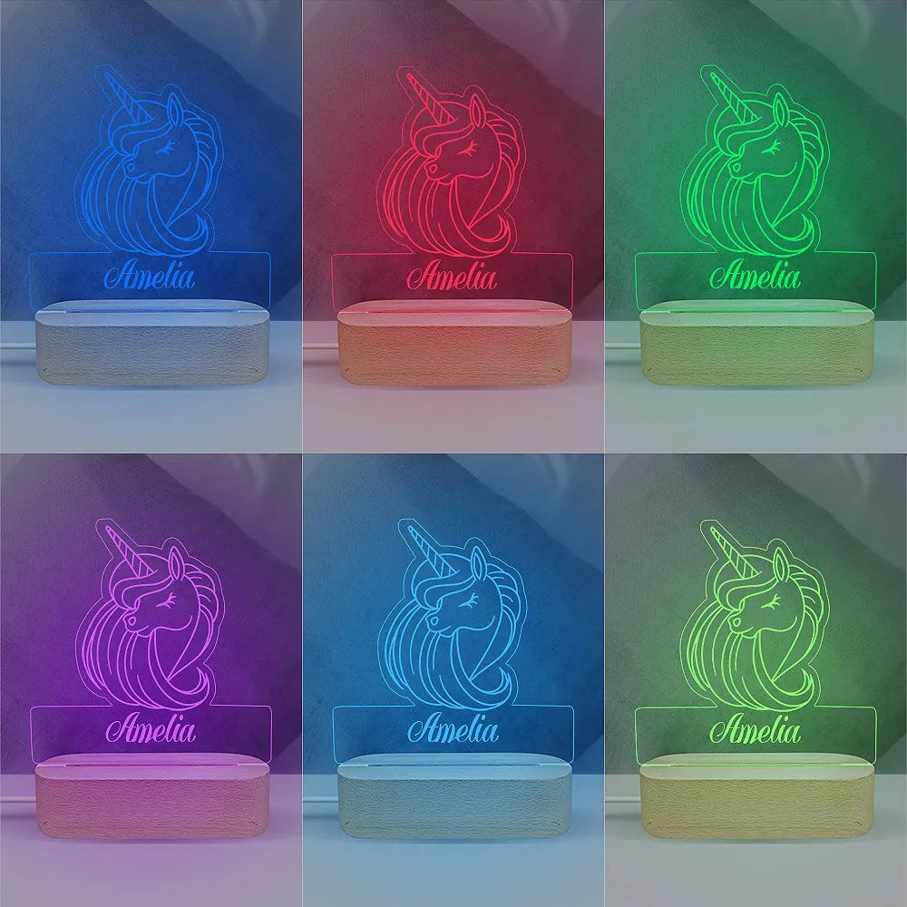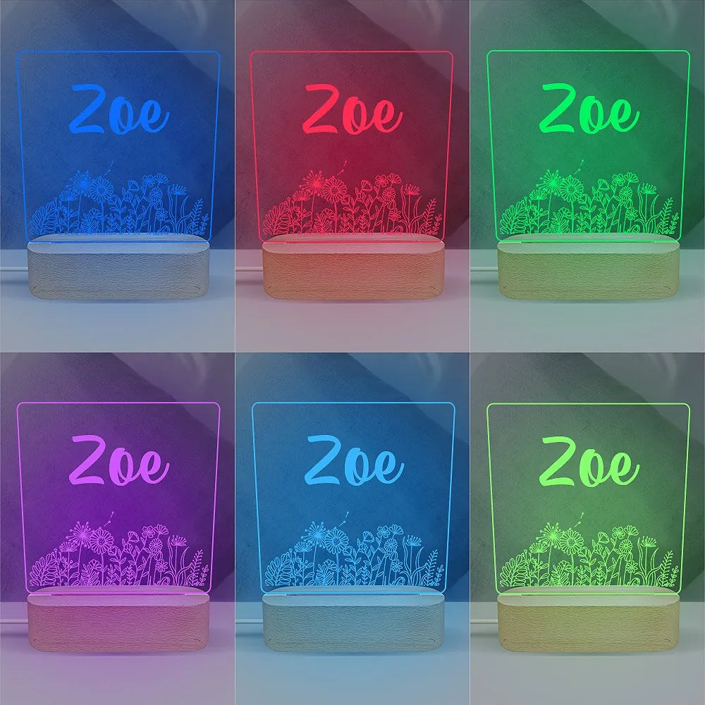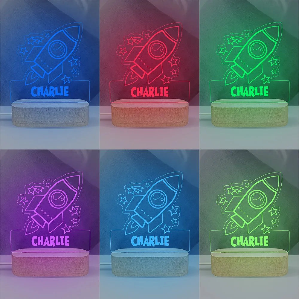 Turn your child's room into a magical wonderland with our personalised night lights! These enchanting lights feature a custom acrylic insert with your child's name displayed proudly. Multi-colored LED lights housed within a sleek wooden base create a calming and comforting glow. The USB wall cable makes it easy to plug in and enjoy the warm ambiance.
