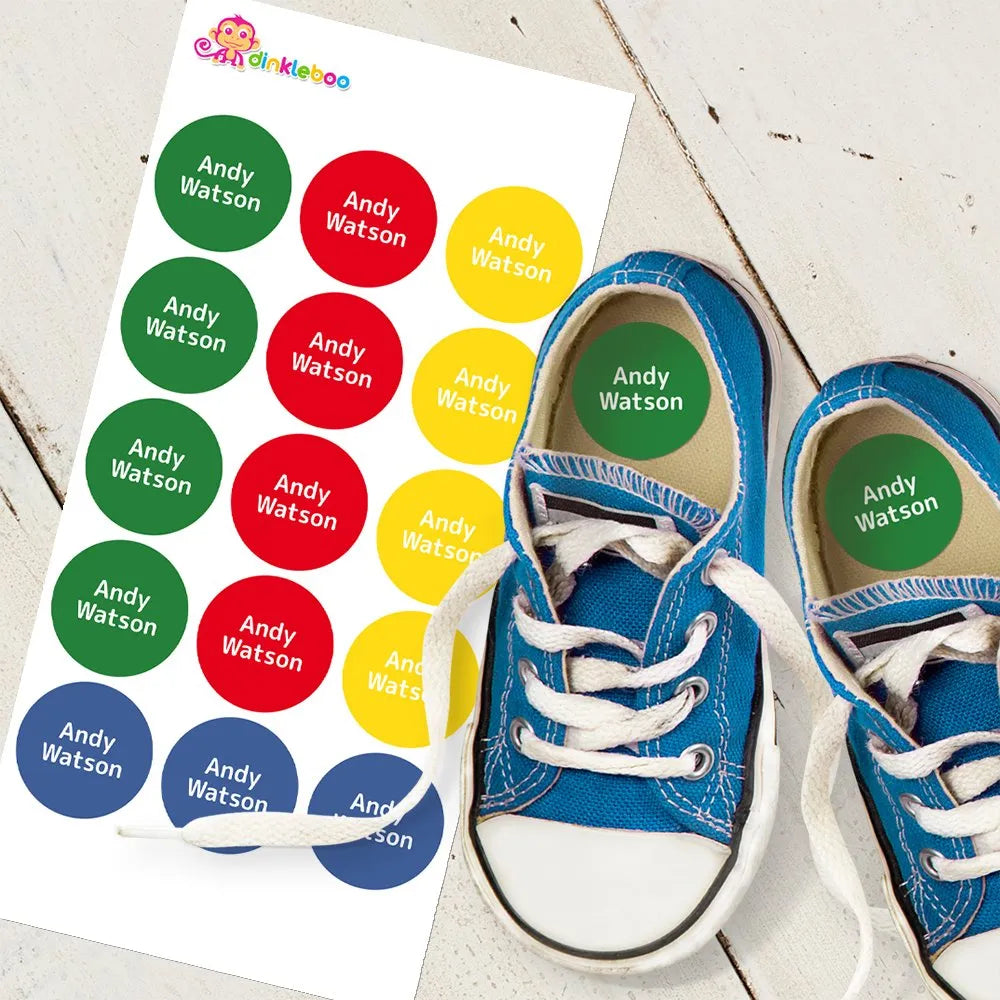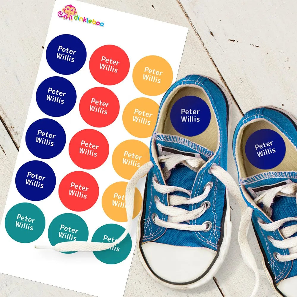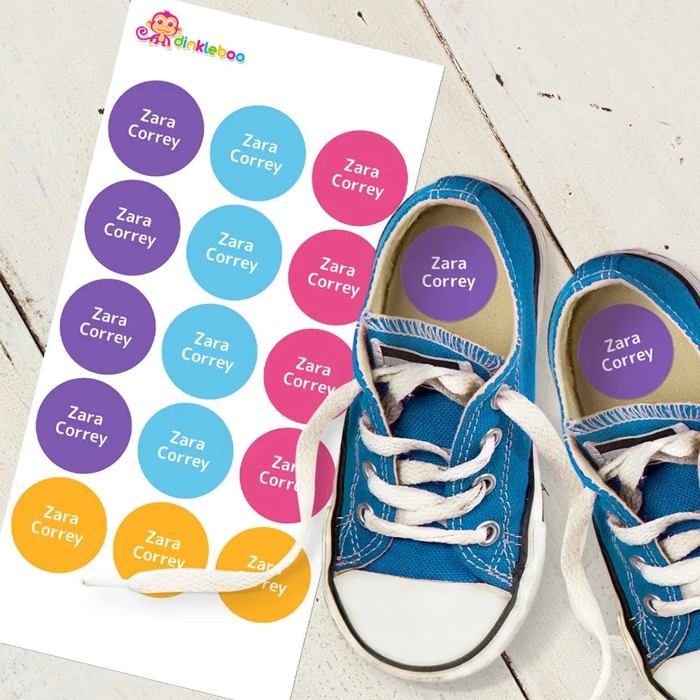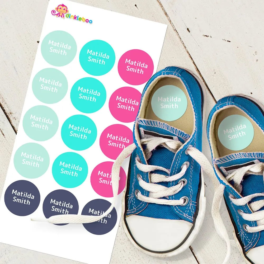 Always misplacing your kids' shoes? Why not order some stylish and practical shoe dot labels from Dinkleboo? Our shoe labels are perfect for keeping all your kids' shoes straight, and they are customisable! Get classy shoe dots that your kids will love and you will appreciate even more! Don't get stuck with dozens of shoes, order our shoe dot labels today! Each set contains 15 shoe dot labels.