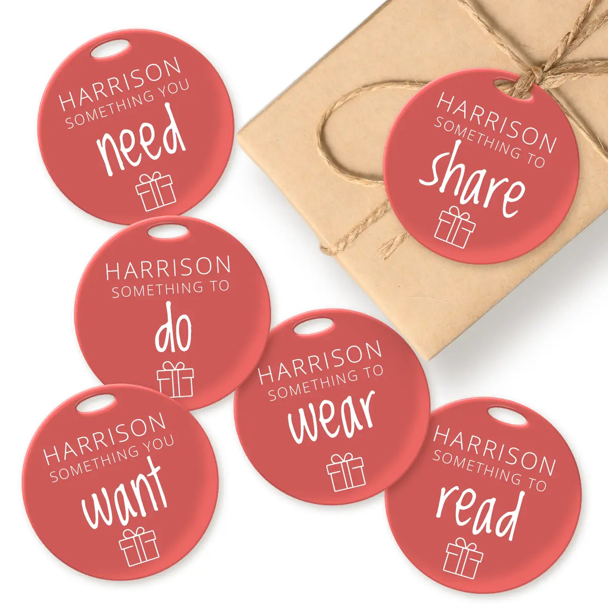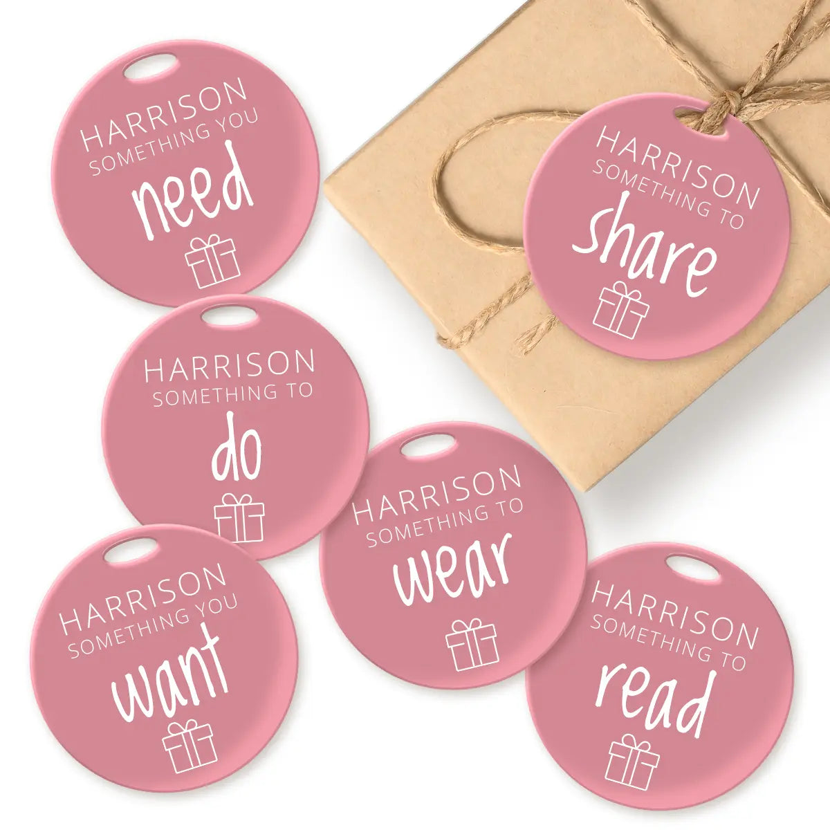 Add a thoughtful, colourful touch to every present with our custom acrylic gift tags, designed to be used year after year. Our set of 6 tags are printed with a name and the classic gifting guide: