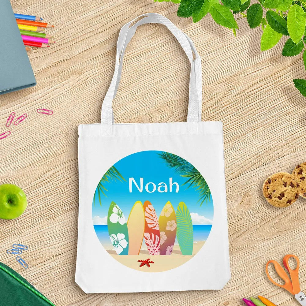 The perfect bag for home or school, personalised with your own name on it. Simply choose your favourite design, then personalise with your name. Made from heavy-duty white canvas material. Each tote bag has reinforced handles that can carry heavy items, like books and school supplies with ease. The long handles make it easy to carry over your shoulder.