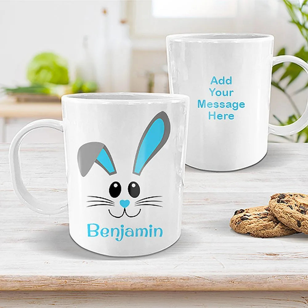 Blue Bunny Face White Plastic Mug