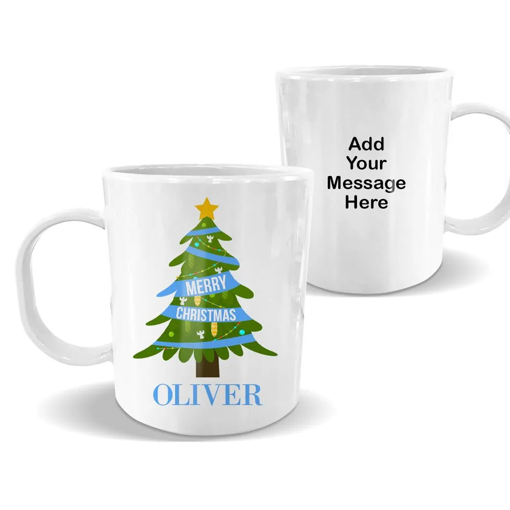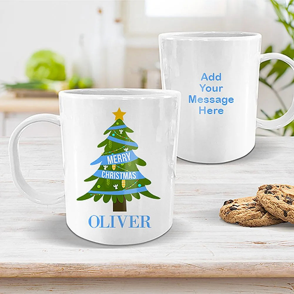 Blue Christmas White Plastic Mug