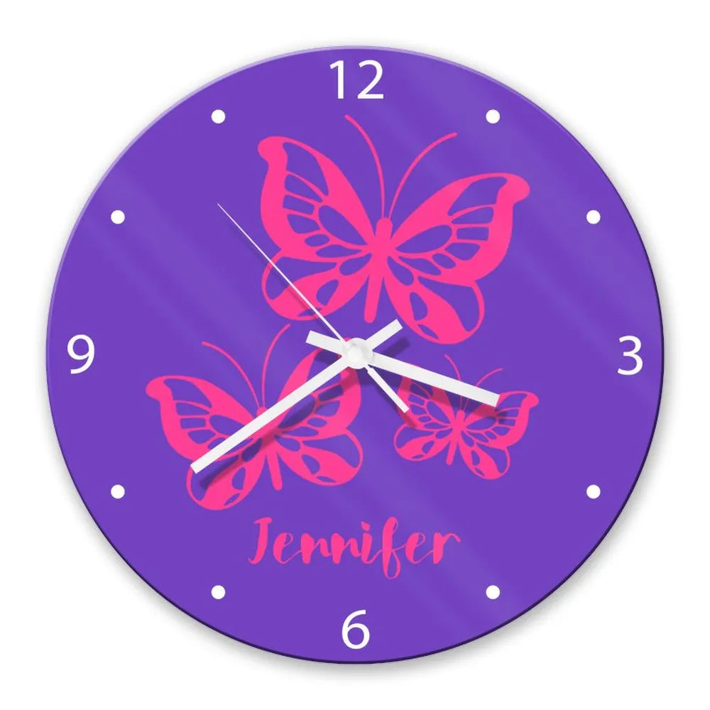 Butterflies Glass Wall Clock