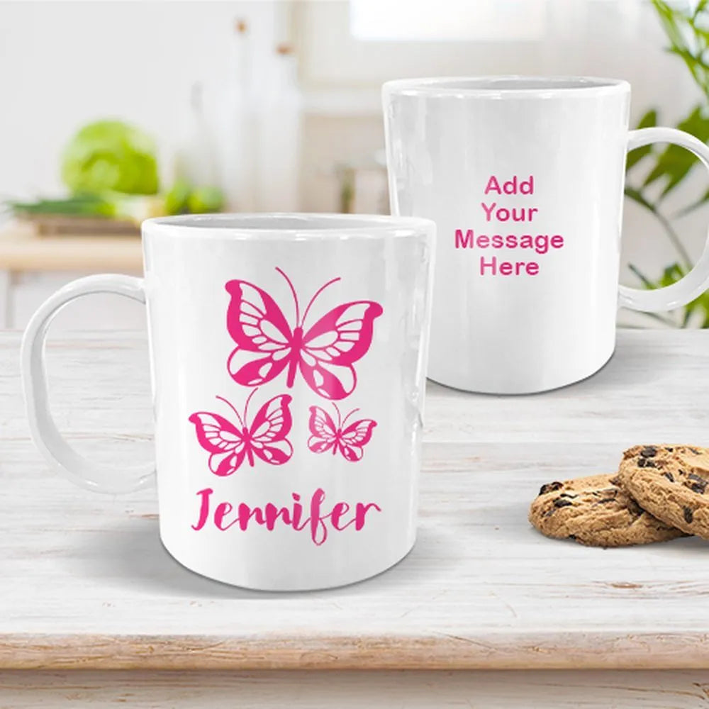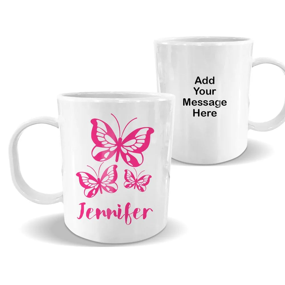 Mugs are made from a highly durable plastic that is shatterproof, so you do not ned to worry about slippery fingers dropping them. Personalise your mug by adding a name or nickname!