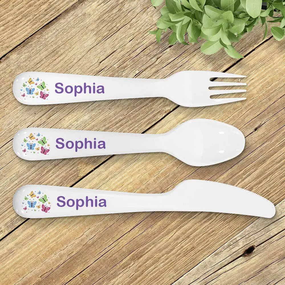 A little kid always feels pretty special when they get their first set of cutlery. Make it more special with our personalised melamine kids' cutlery sets featuring a knife, fork and spoon.