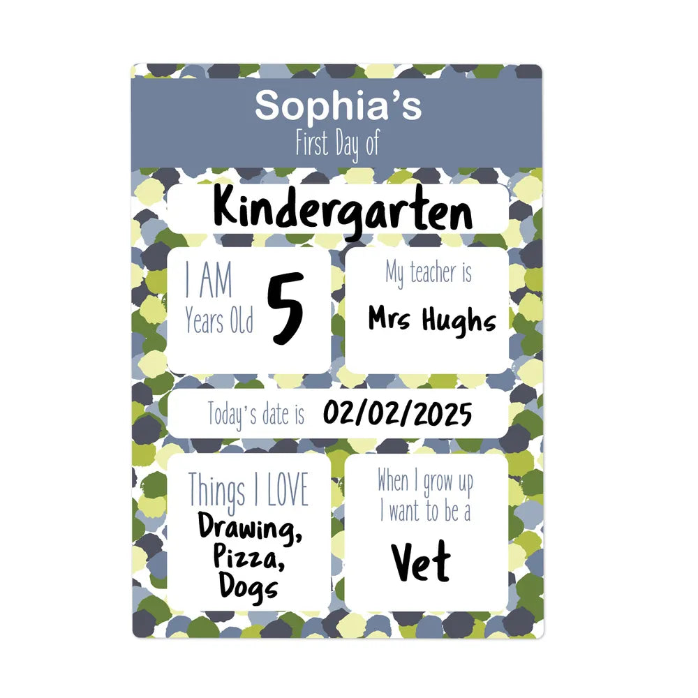 First Day Signs are the perfect way to celebrate and capture all of their First Day milestones as they grow. Personalise with their name and choose from our variety of designs. Write on it with a dry erase marker and then simply wipe it clean and you're ready for next time!