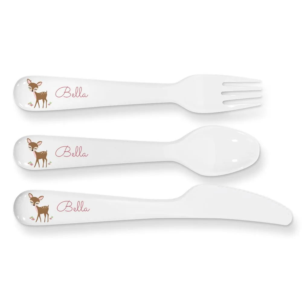 A little kid always feels pretty special when they get their first set of cutlery. Make it more special with our personalised melamine kids' cutlery sets featuring a knife, fork and spoon.