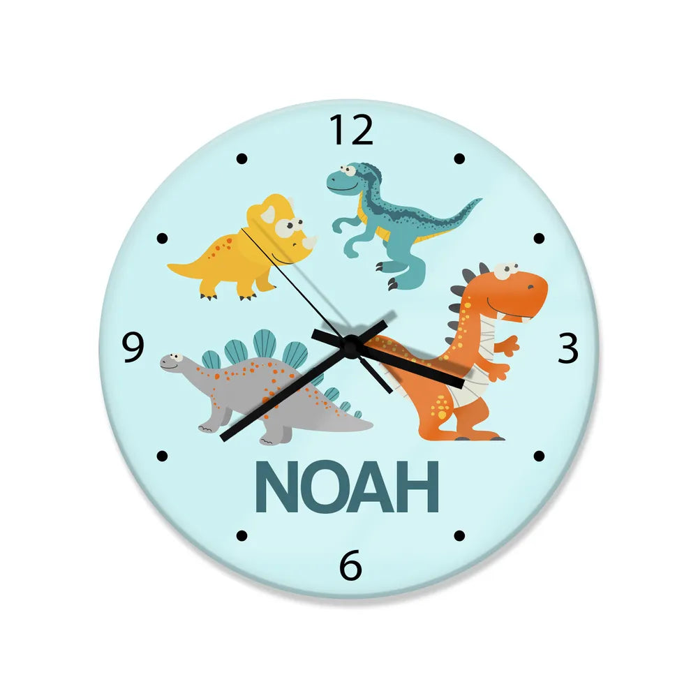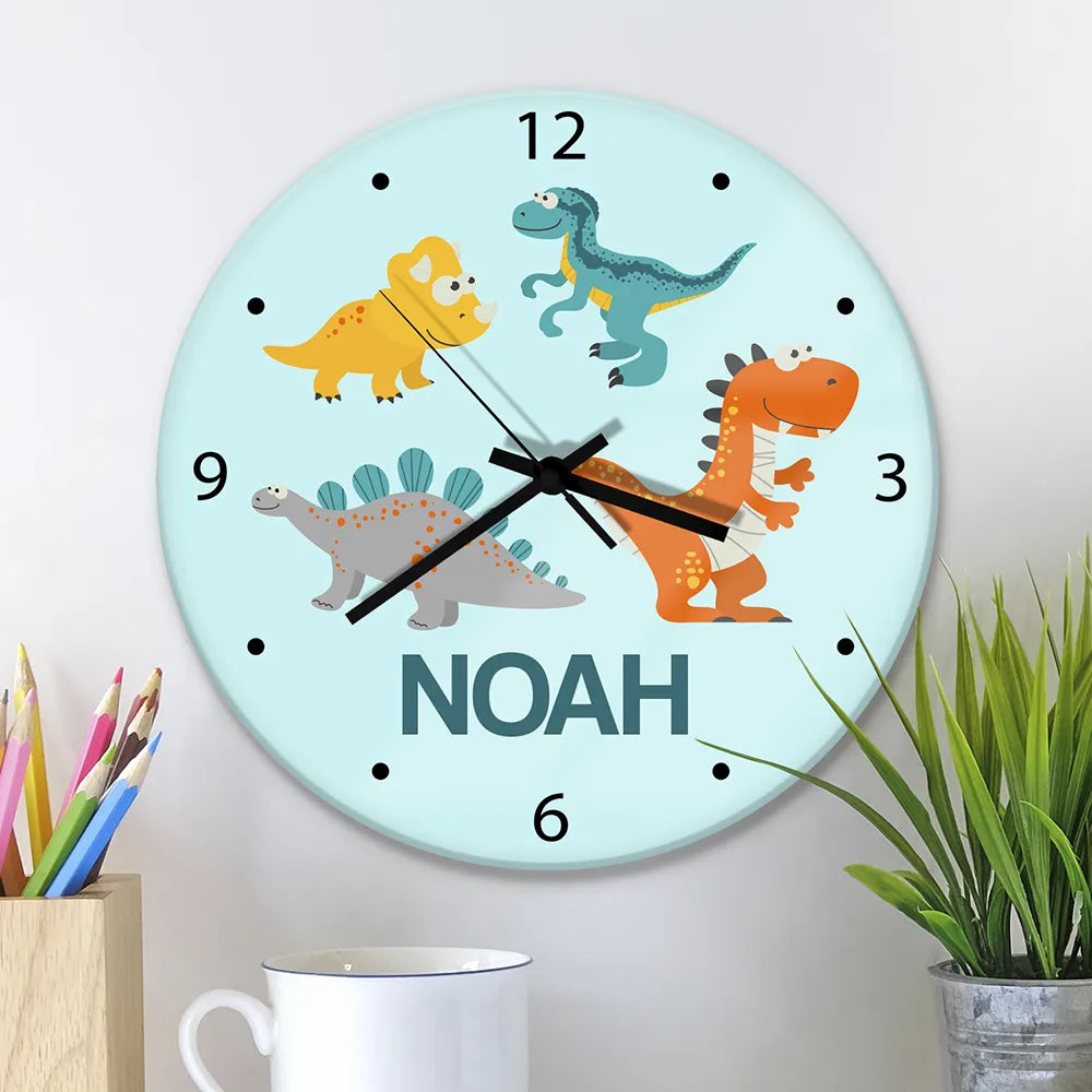 Cute Dinosaurs Glass Wall Clock
