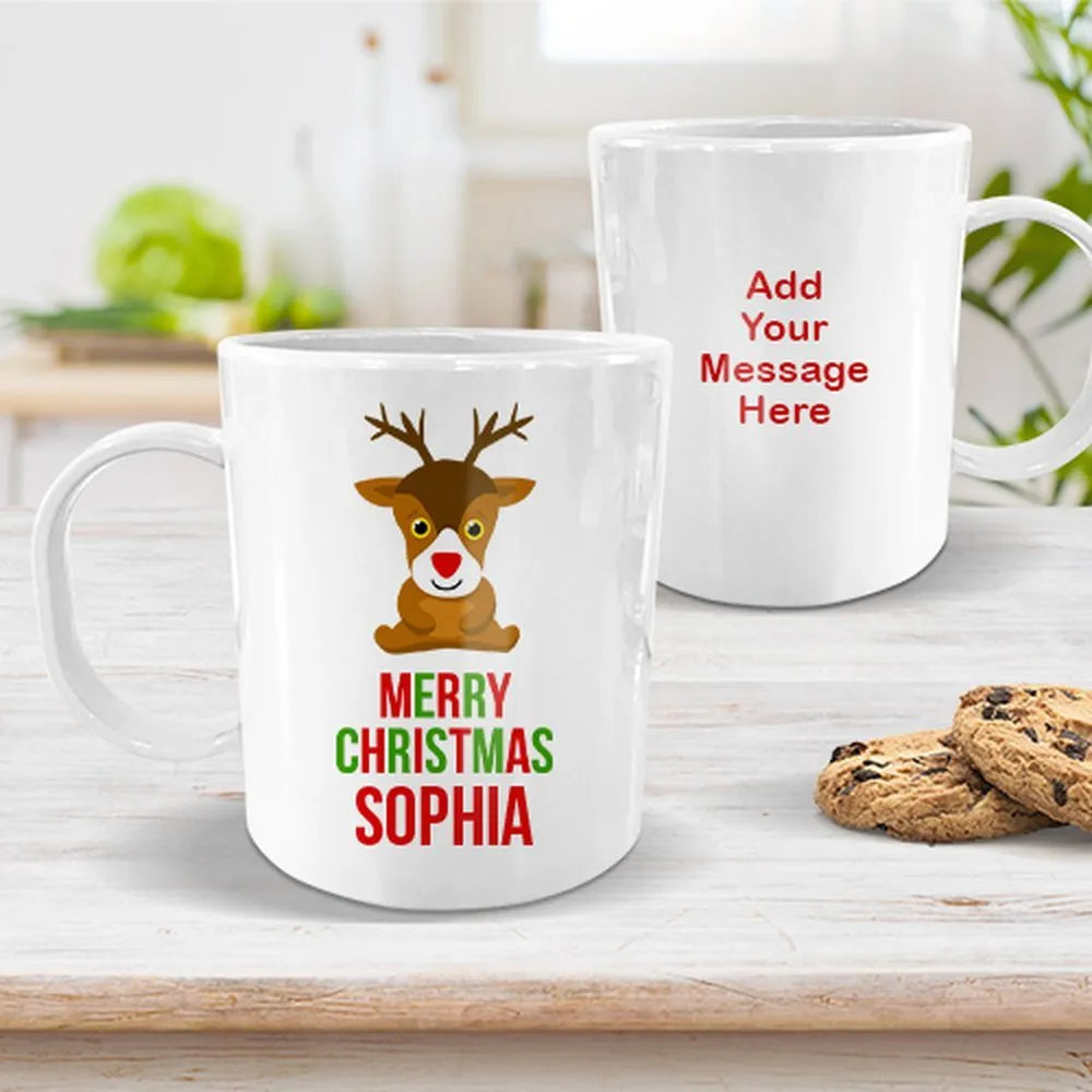 Cute Reindeer White Plastic Mug