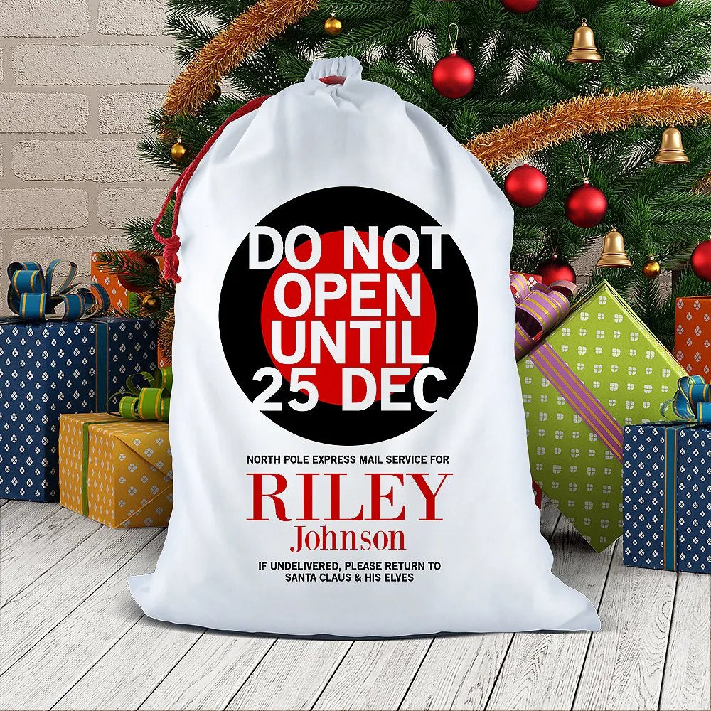 These sacks are white in colour, made from polyester material and include a drawstring to to help keep the secret under wraps.