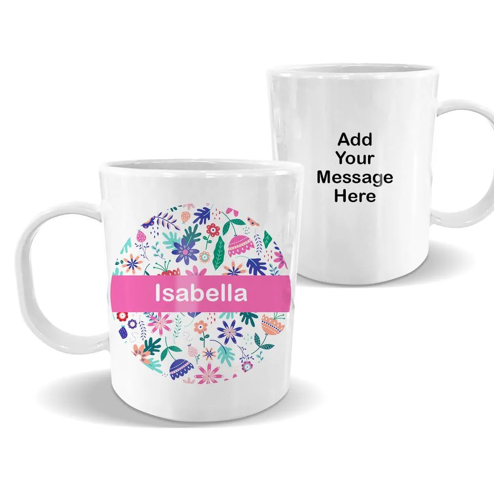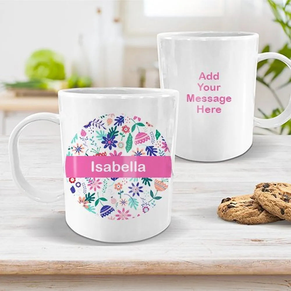 Mugs are made from a highly durable BPA-free plastic that is shatterproof, so you do not ned to worry about slippery fingers dropping them. Personalise your mug by adding a name or nickname!