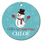 Happy Snowman Round Porcelain Ornament