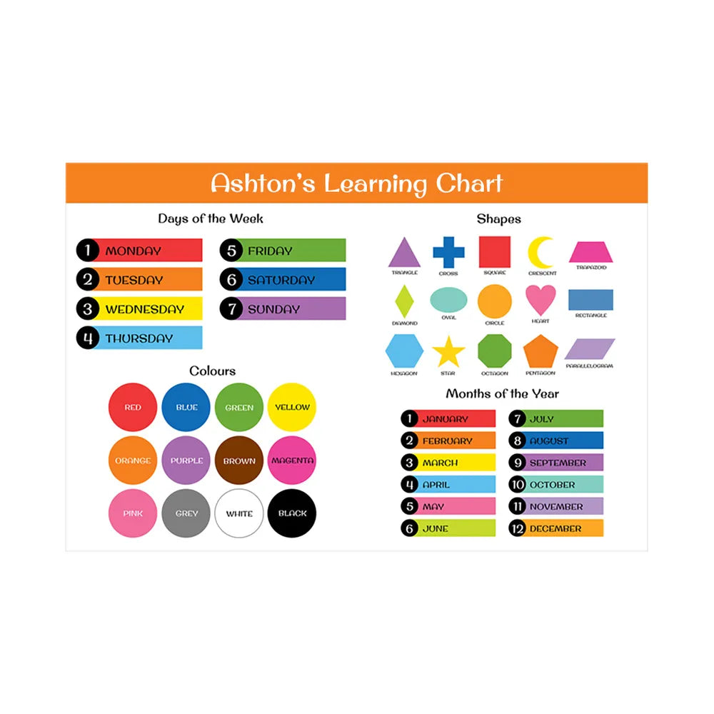 Help stimulate your little one's learning with our range of personalised educational wall decals. Educational wall decals come in two sizes (40x60cm and 50x75cm) and are ideal for use in the home, at school or at daycare centres. They are great for helping to teach toddlers, kindergarteners and pre-schoolers the basics. Each poster can be personalised with your child's name or class group.