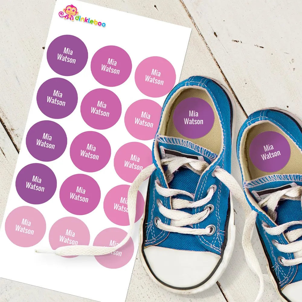 Shoe dots are printed on vinyl and are a back to school essential! These personalised shoe dots fit nicely inside the heel of the shoe so your child can easily find their shoes.