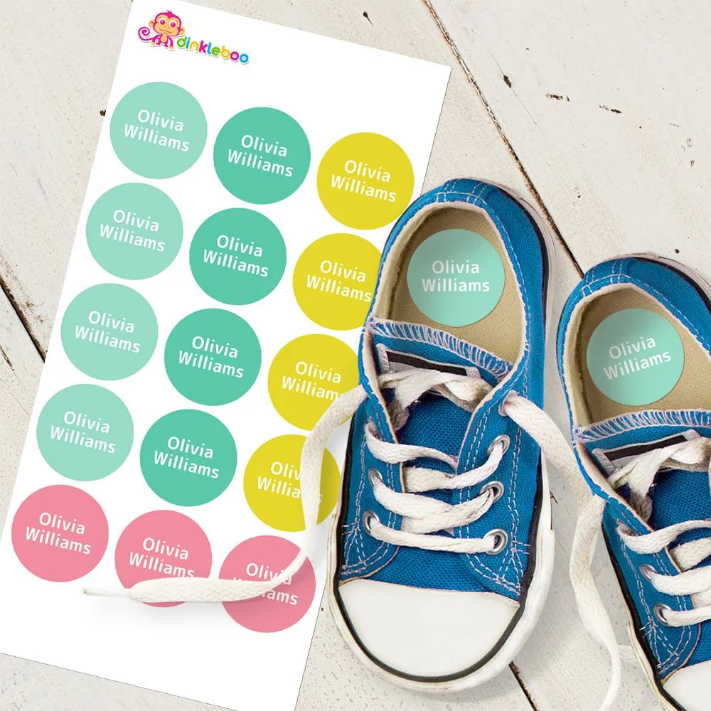 Shoe dots are printed on vinyl and are a back to school essential! These personalised shoe dots fit nicely inside the heel of the shoe so your child can easily find their shoes.