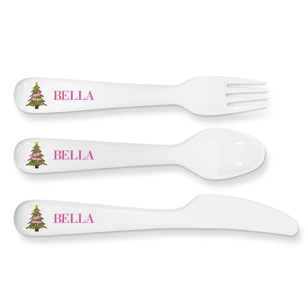 Our personalised melamine kids' cutlery set is made from a durable high gloss plastic. Inspect product before each use and dispose of at the first sign of damage or weakness.