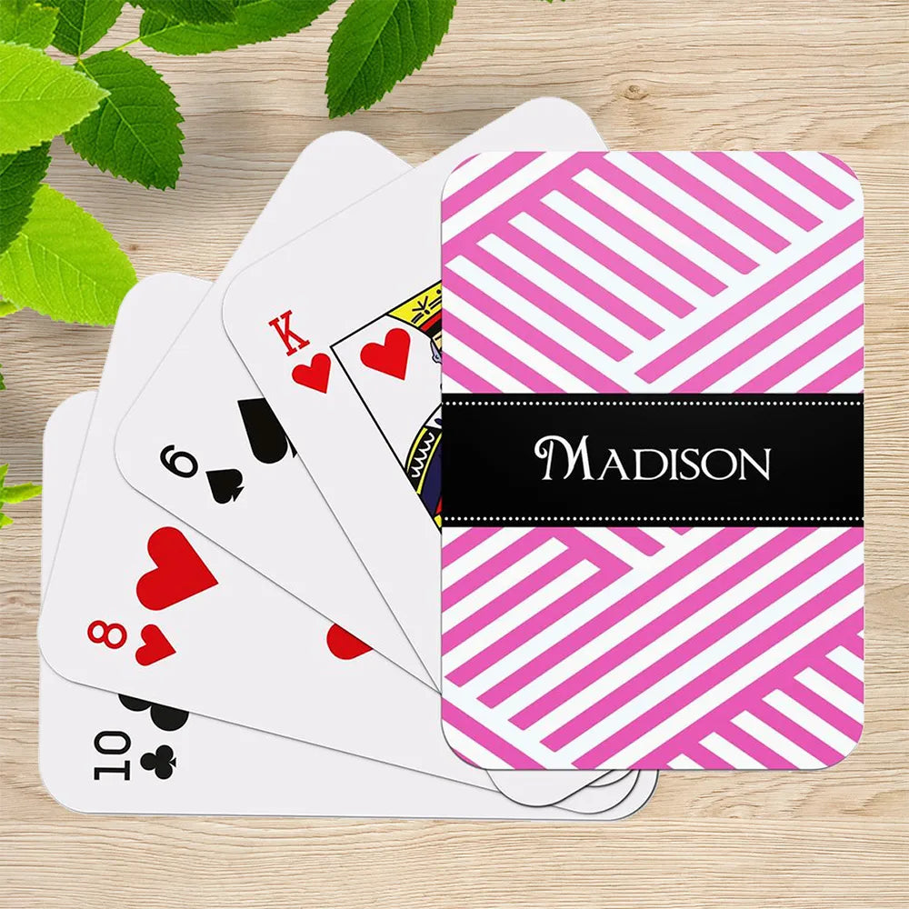 Your kid will love a set of their own playing cards with their name on it. Card games are a fool proof, fun and educational way to entertain kids. Enjoy playing Snap, Go Fish, Blackjack and all the classic card games with your own personalised playing cards. Full pack of 54 playing cards.