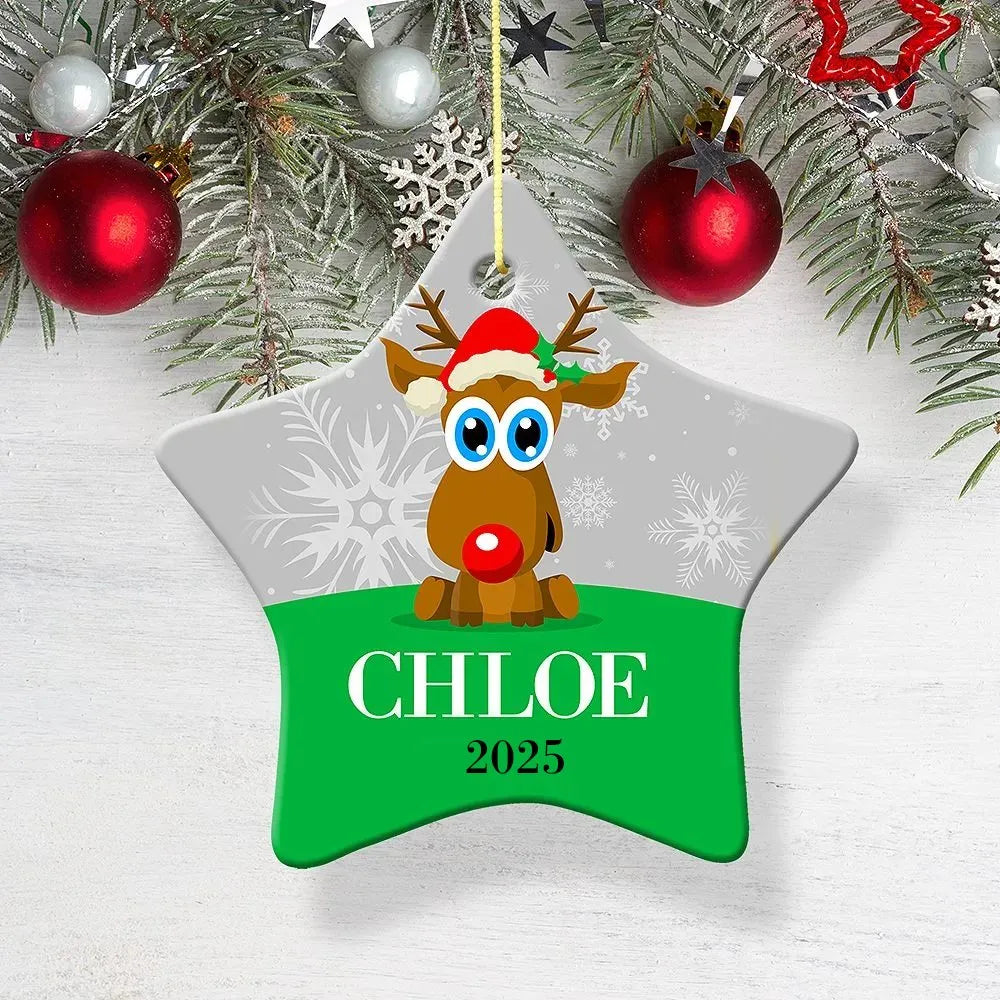 Create a unique ornament for all the family, choose from a range of designs then simply add your name and year. These beautiful star ornaments are made of porcelain and come with gold string ready to hang on the tree.