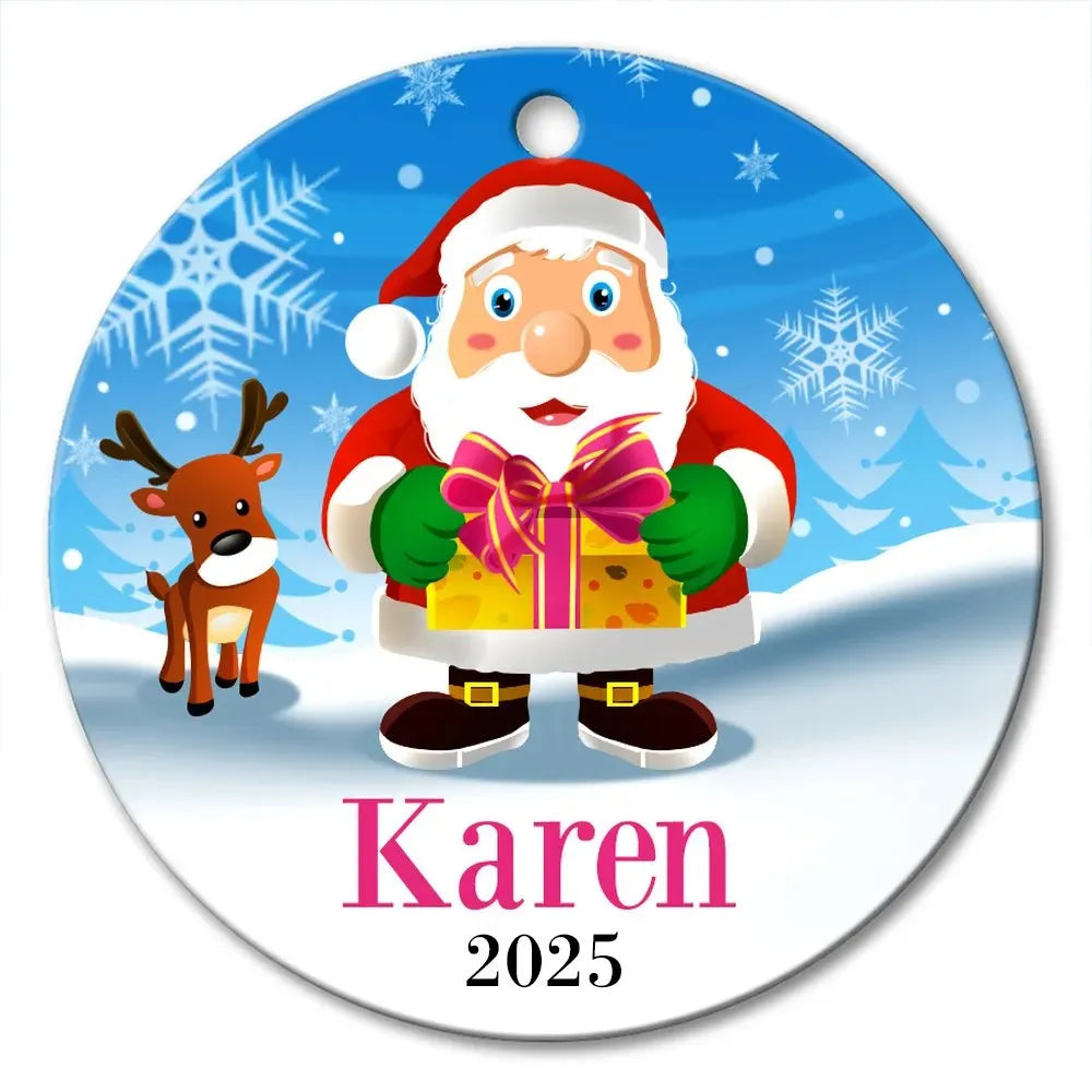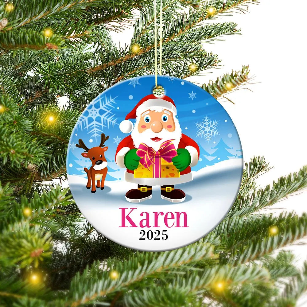 Santa Gift Round Porcelain Ornament