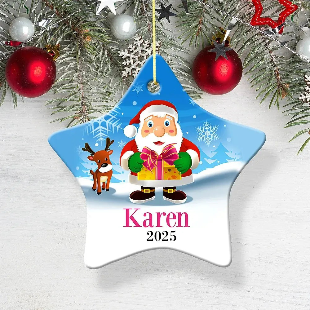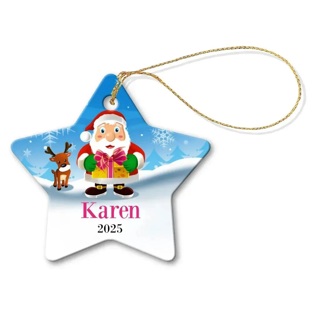 Santa Gift Star Porcelain Ornament