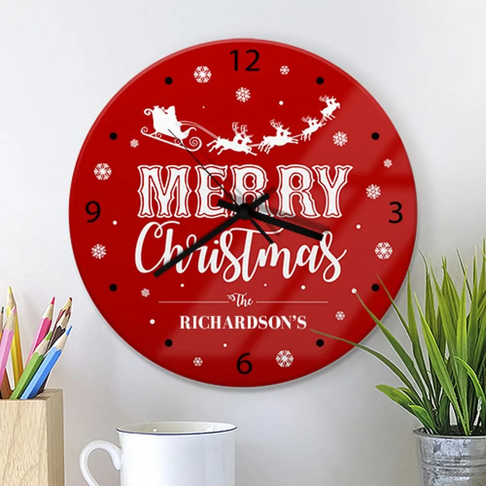 Santa Sleigh Glass Wall Clock