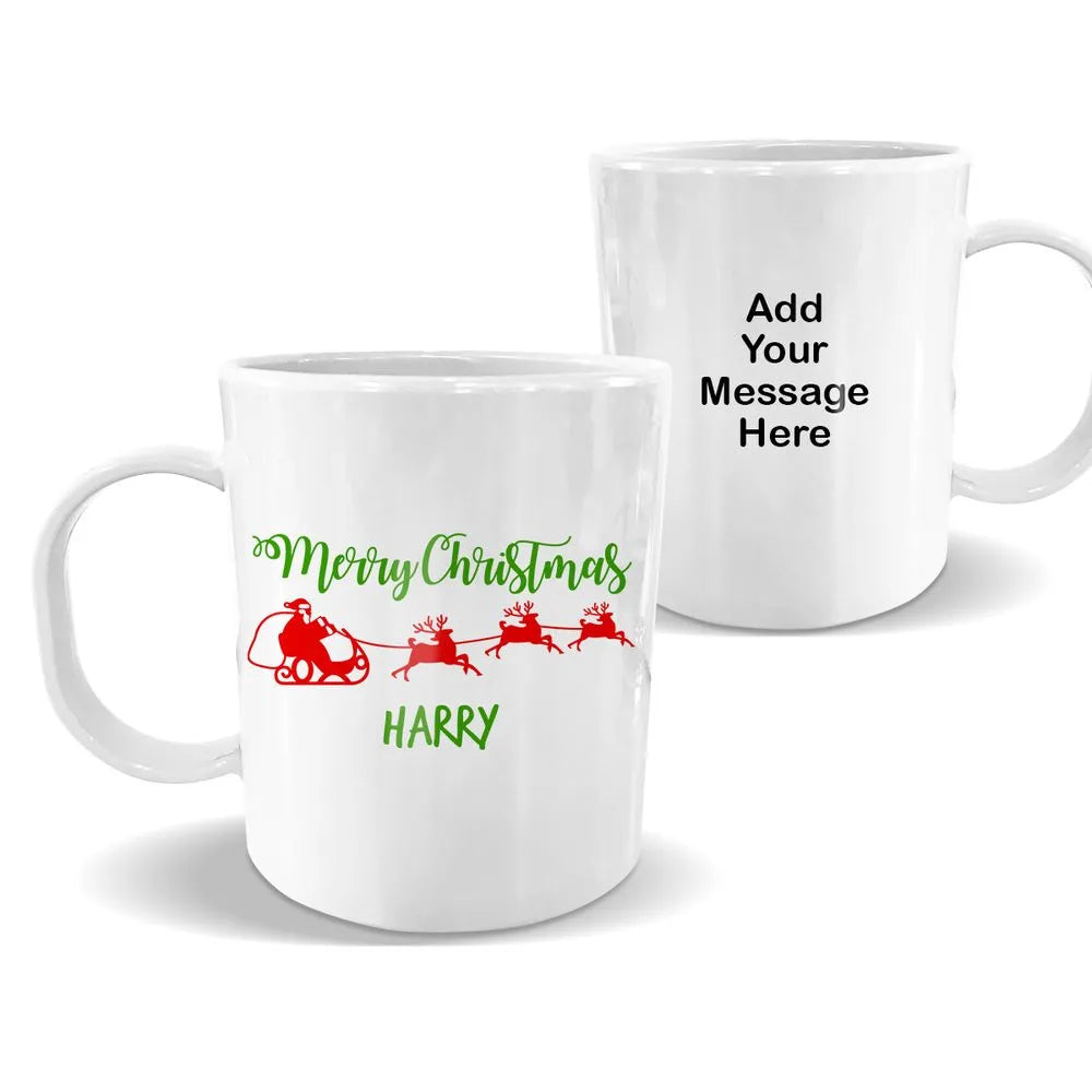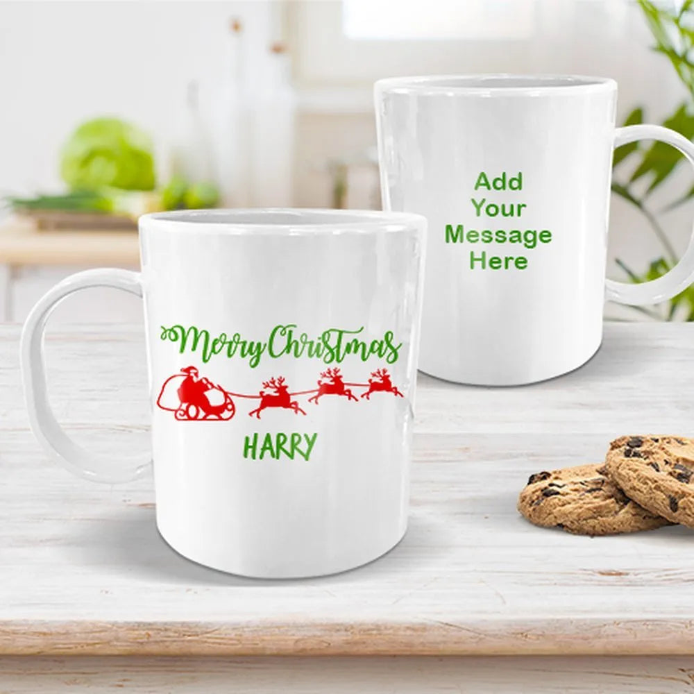 Santa Sleigh White Plastic Mug