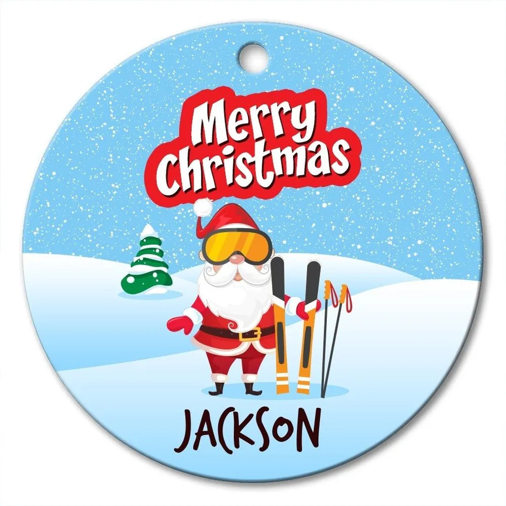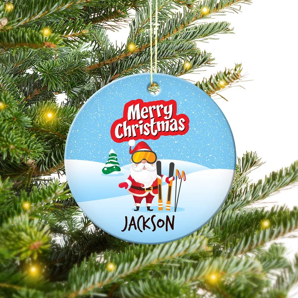 Skiing Round Porcelain Ornament