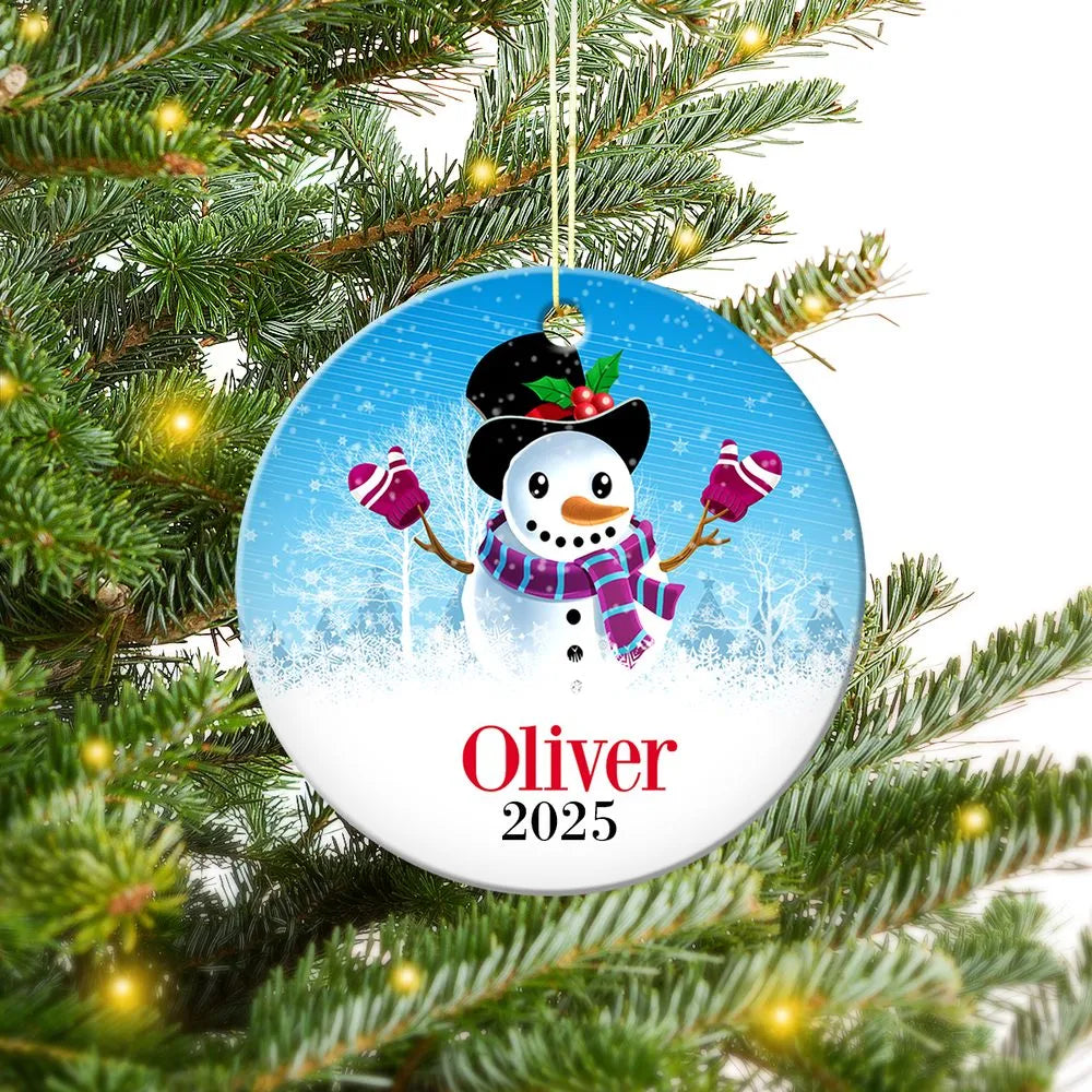 Snowman Round Porcelain Ornament