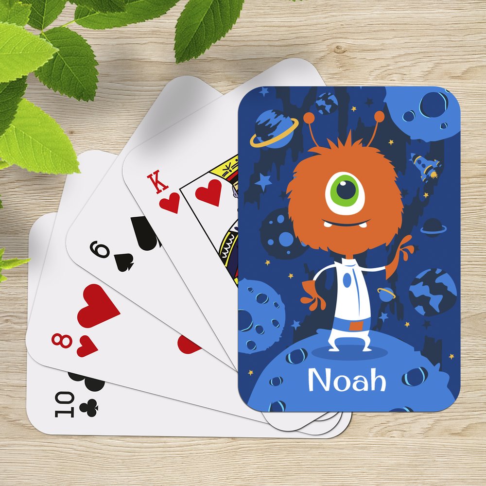Your kid will love a set of their own playing cards with their name on it. Card games are a fool proof, fun and educational way to entertain kids. Enjoy playing Snap, Go Fish, Blackjack and all the classic card games with your own personalised playing cards. Full pack of 54 playing cards.